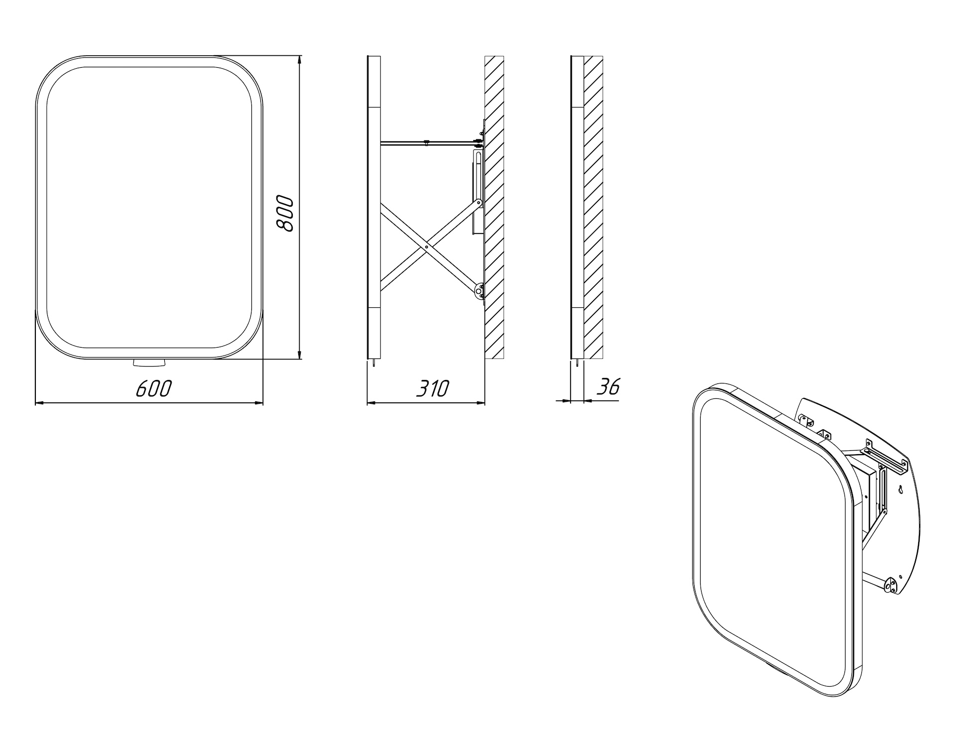 - Szer.600mm x wys.800mm, całkowita głębokość 36 mm