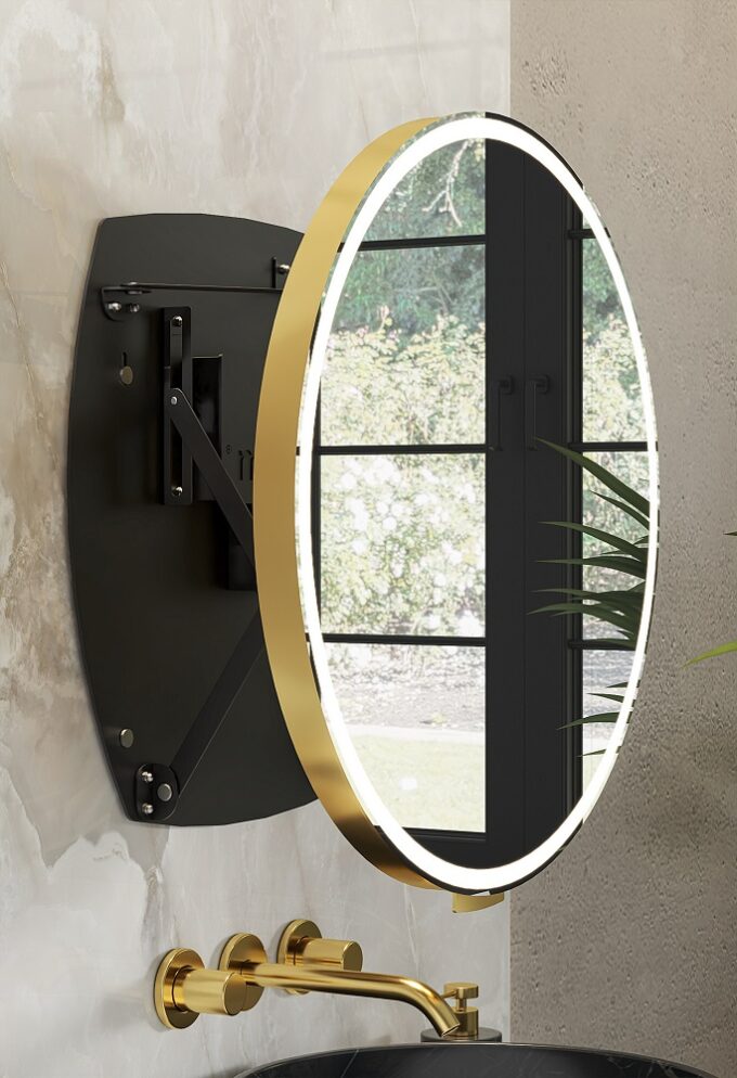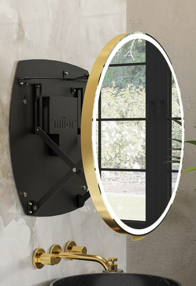 Nowoczesna, ultralekka konstrukcja Materiały odporne na wilgoć i warunki atmosferyczne Maksymalny wysuw 31 cm Automatyczny włącznik oświetlenia, przy wysunięciu Liniowy LED świecący ciągłym światłem Materiały wysokiej jakości Grubość całkowita 36 mm Stopień ochrony IP44 Tafla lustrzana zabezpieczona folią bezpieczeństwa (od tyłu) Mechanizm AXIO-LINK® nowej generacji w kolorze białym, czarnym lub srebrnym Łatwy montaż 6 kolorów ram: biały mat, czarny mat, aluminium szczotkowane, złoto szczotkowane, miedź szczotkowana, grafit szczotkowany Zintegrowany uchwyt w kolorze ramy