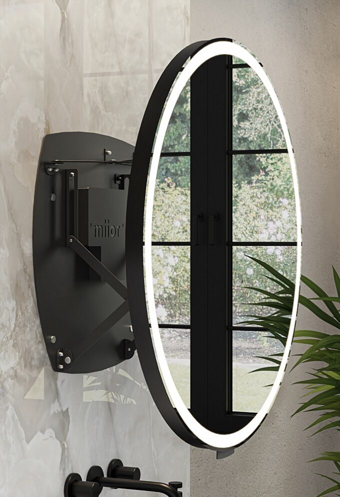 Nowoczesna, ultralekka konstrukcja Materiały odporne na wilgoć i warunki atmosferyczne Maksymalny wysuw 31 cm Automatyczny włącznik oświetlenia, przy wysunięciu Liniowy LED świecący ciągłym światłem Materiały wysokiej jakości Grubość całkowita 36 mm Stopień ochrony IP44 Tafla lustrzana zabezpieczona folią bezpieczeństwa (od tyłu) Mechanizm AXIO-LINK® nowej generacji w kolorze białym, czarnym lub srebrnym Łatwy montaż 6 kolorów ram: biały mat, czarny mat, aluminium szczotkowane, złoto szczotkowane, miedź szczotkowana, grafit szczotkowany Zintegrowany uchwyt w kolorze ramy