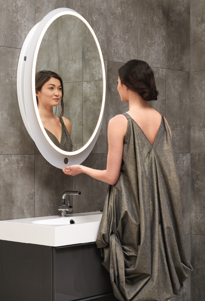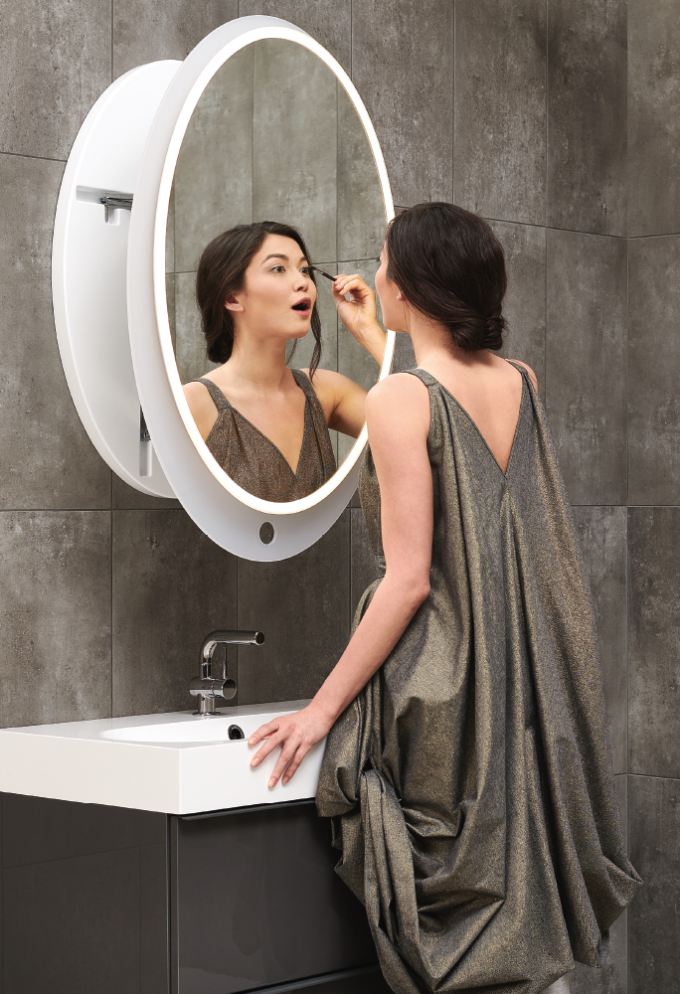Wyjątkowe lustro wysuwane z automatycznym włącznikiem oświetlenia LED i mechanizmem wysuwanym AXIO-LINK®