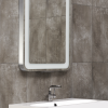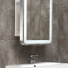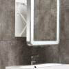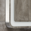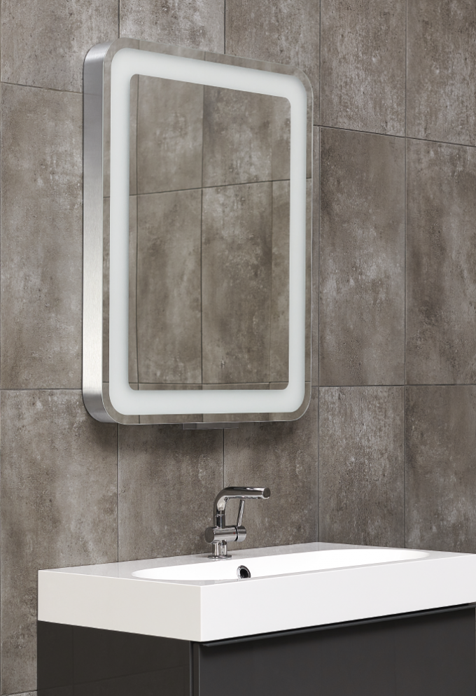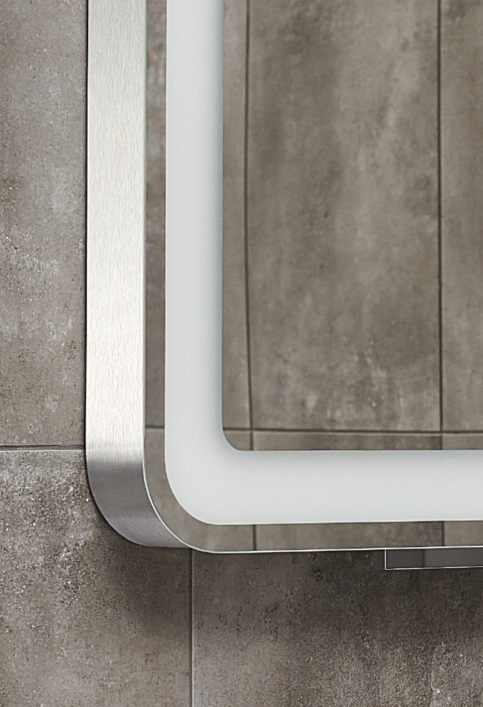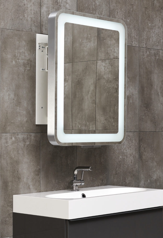 Nowoczesne, płaskie lustro z mechanizmem wysuwnym AXIO-LINK® i oświetleniem, z zaokrąglonymi narożnikami.