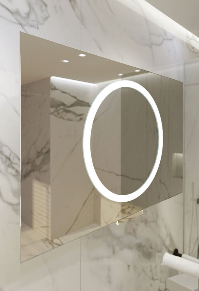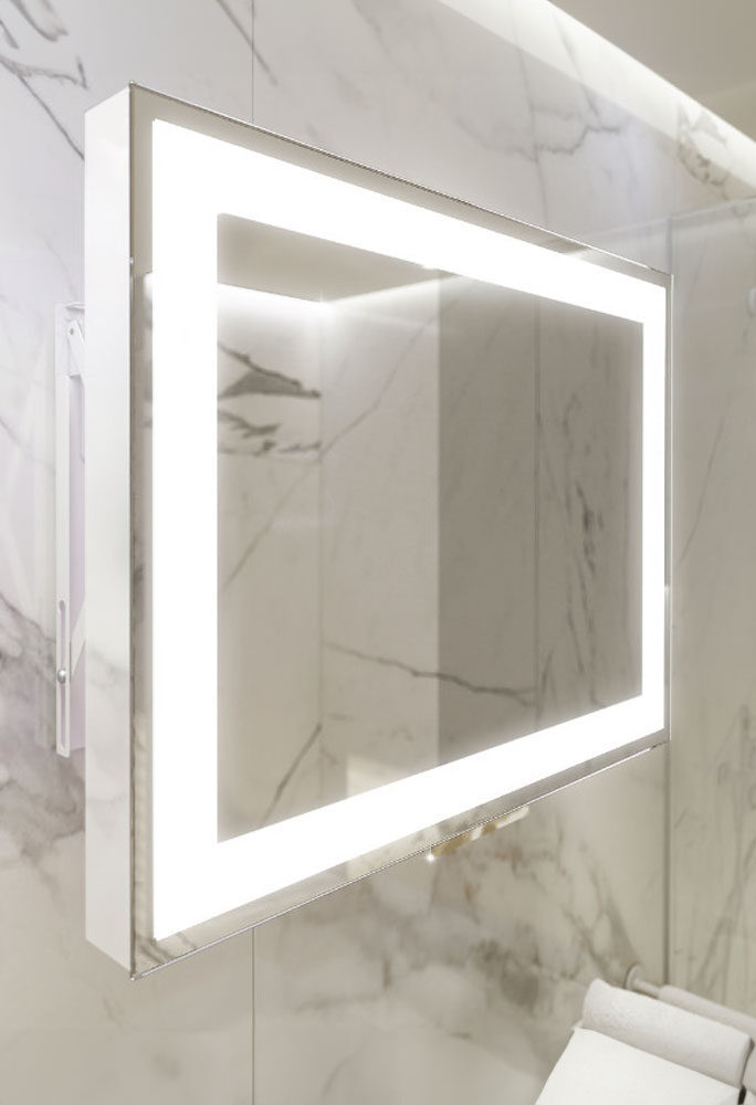 Nowoczesne, prostokątne, płaskie lustro z mechanizmem wysuwnym AXIO-LINK® i oświetleniem LED.