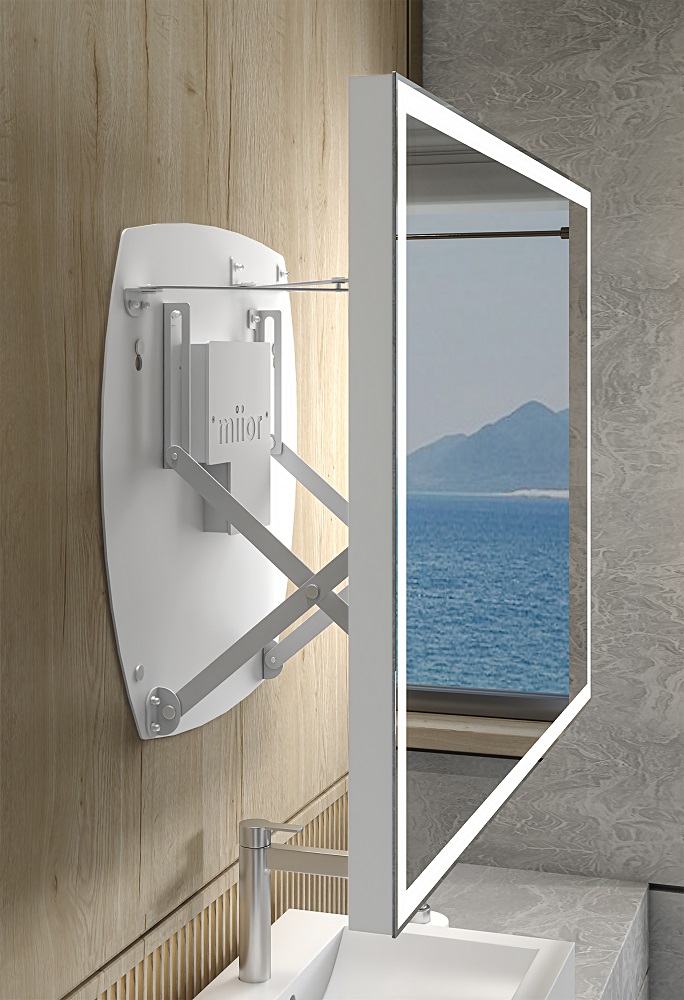 Nowoczesna, ultralekka konstrukcja Materiały odporne na wilgoć i warunki atmosferyczne Maksymalny wysuw 31 cm Automatyczny włącznik oświetlenia, przy wysunięciu Liniowy LED świecący ciągłym światłem Materiały wysokiej jakości Grubość całkowita 36 mm Stopień ochrony IP44 Tafla lustrzana zabezpieczona folią bezpieczeństwa (od tyłu) Mechanizm AXIO-LINK® nowej generacji w kolorze białym, czarnym lub srebrnym Łatwy montaż 6 kolorów ram: biały mat, czarny mat, aluminium szczotkowane, złoto szczotkowane, miedź szczotkowana, grafit szczotkowany Zintegrowany uchwyt w kolorze ramy